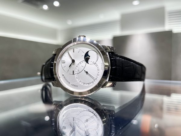 ダイヤル配置とデザインが印象的ですが、時刻表示や複雑機構をオフセンターに配置することは、ハリーウィンストンのデザイン哲学のひとつとも言え、得意とする分野でもあります。