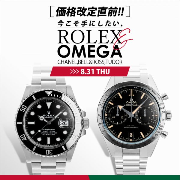 正規店の値段が上がれば並行新品や中古品も続いて上がっていくことはよくある事で、正規品の値上がりが確定となった今は、まさに腕時計購入の良いタイミングになるかと思います。