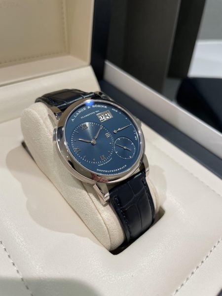 さて今回は非常に珍しいブルーダイヤルのA.ランゲ&ゾーネ ランゲ1の個体が入荷しましたので紹介させていただきます。
