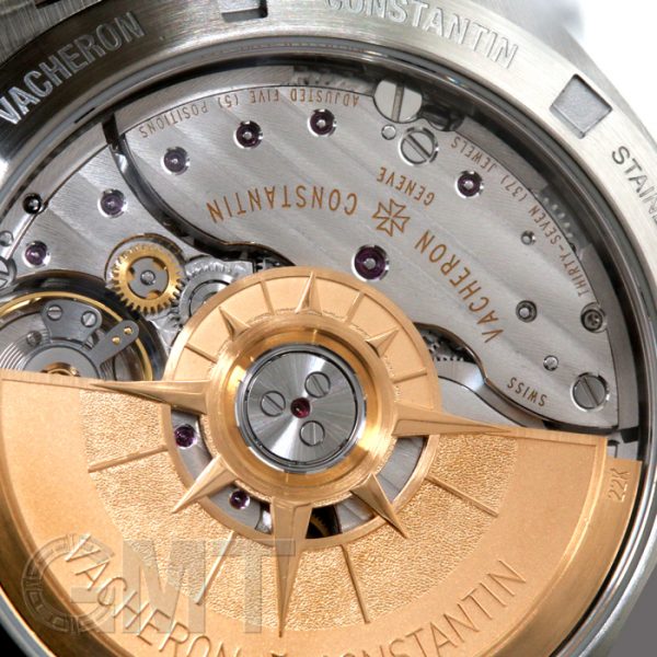 直訳すると「海を越える」という意味を持ち、「旅」をコンセプトに沿った羅針盤モチーフのローターから覗くのは、完全マニュファクチュールでジュネーブシールを取得した「Cal.5100」。