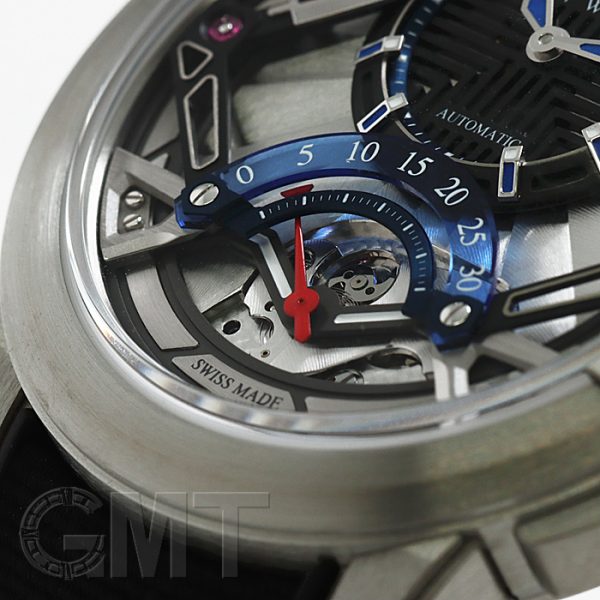 本作に於いては、新たに30秒で始点に戻るレトログラード式の秒表示が採用されています。周回運動ではなく、往復運動で表示する仕組みです。そしてそのレトログラードを、可視化するというオープンワークなデザインで採用した点が、このプロジェクトZ14の最大の魅力ではないでしょうか。